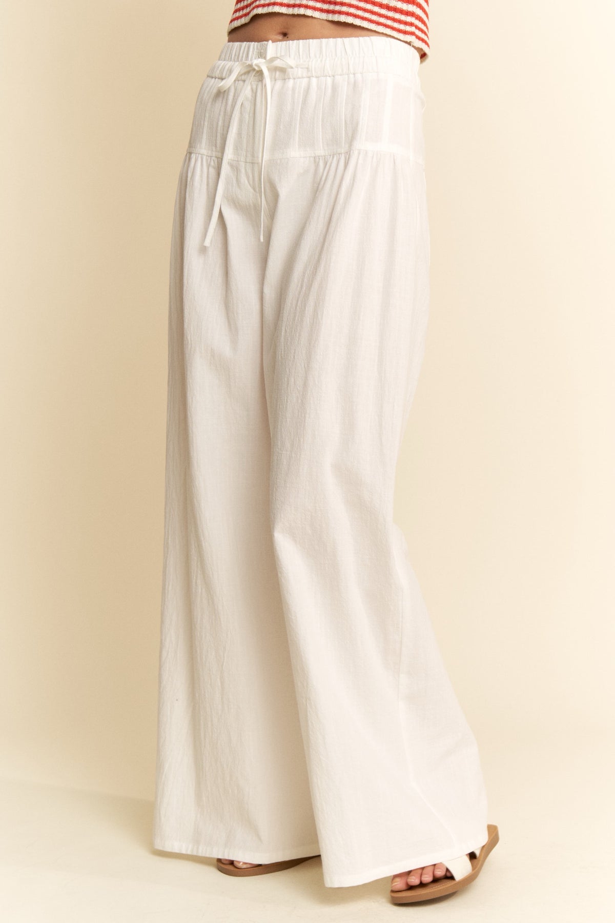 Breeze through the warmer months in effortless style with our Pintucked Cotton Wide-Leg Pants for women. These airy and elegant pants are crafted from lightweight, breathable cotton—ideal for warm weather, travel, and laid-back days. The pintucked detailing at the waistline adds a touch of structure and sophistication, while the elastic waistband with an adjustable drawstring ensures a comfortable, personalized fit.