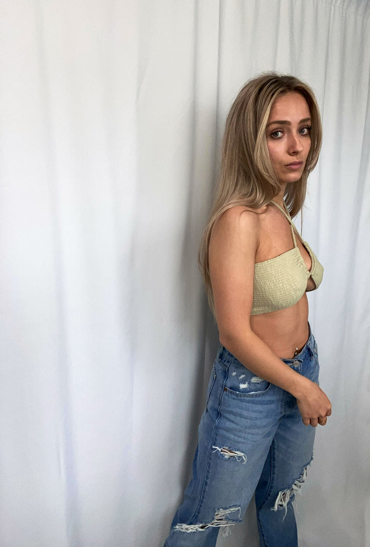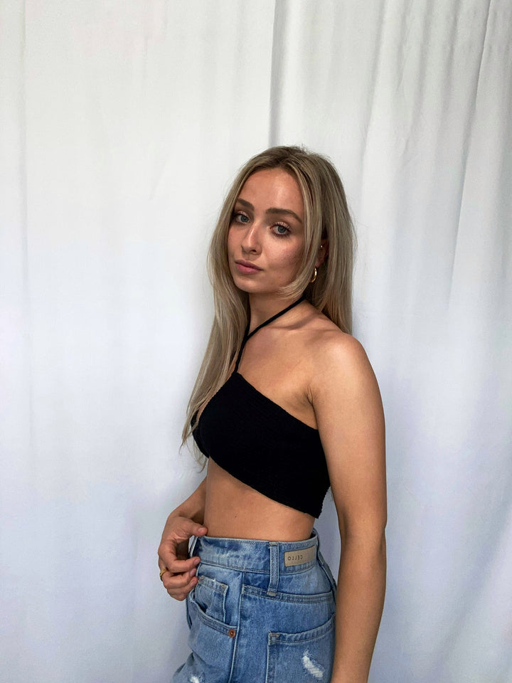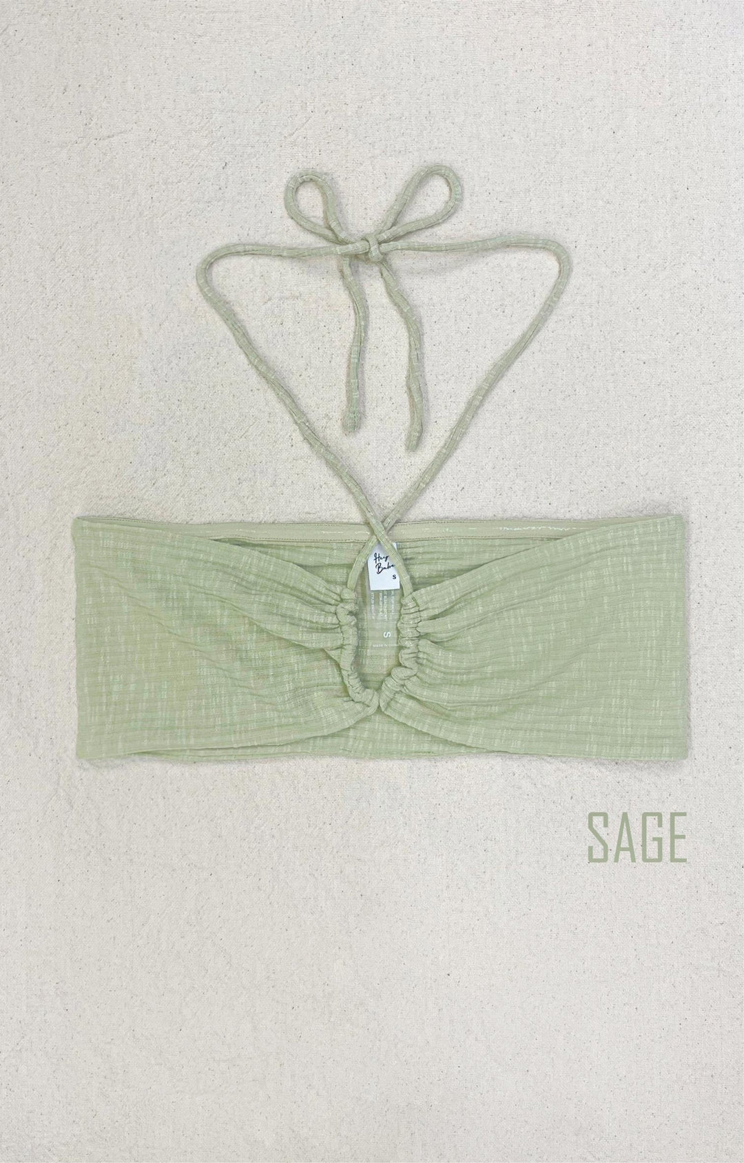 Model is 5'0 34C wearing a small in black and a medium in sage