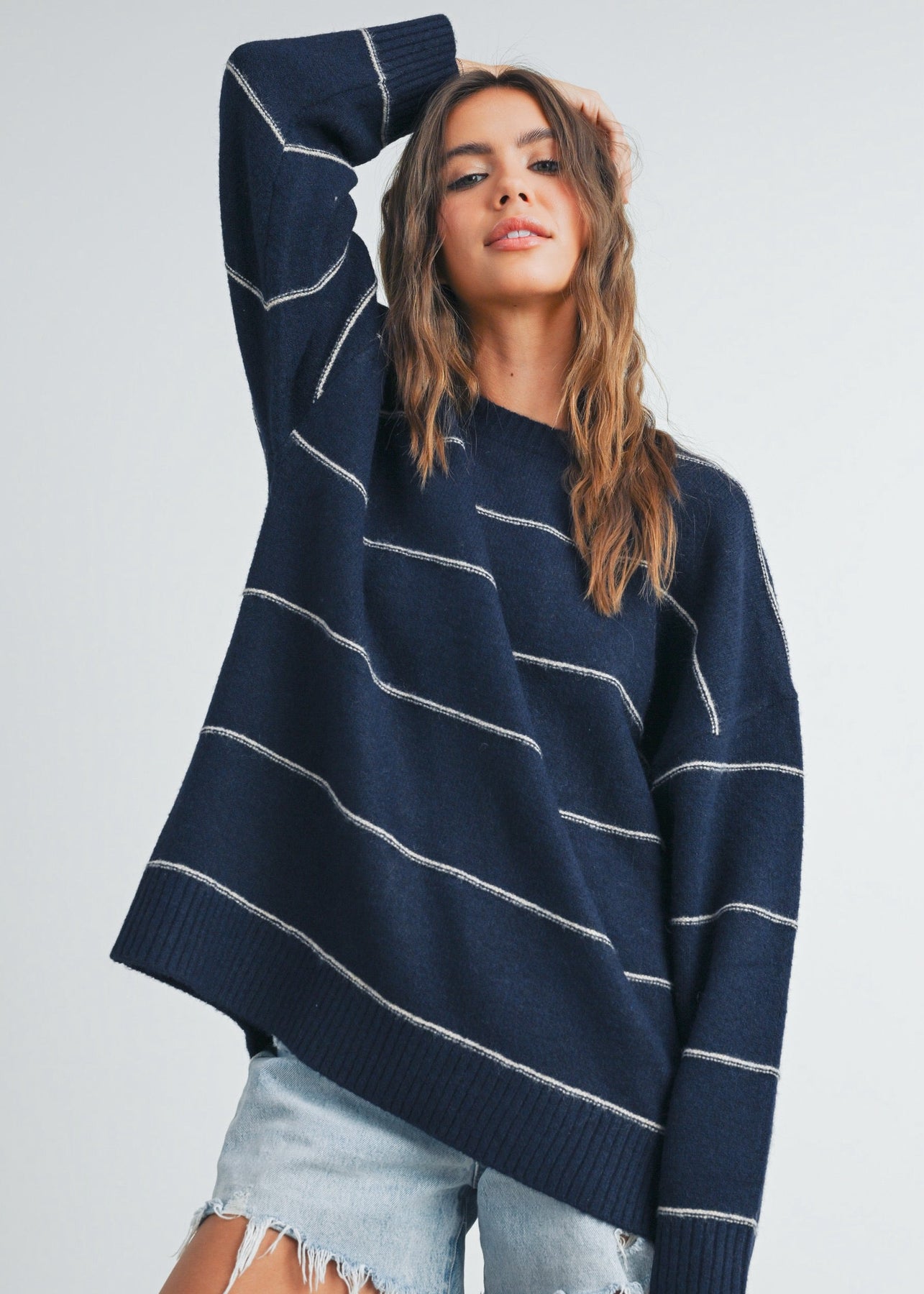 Stay comfortable and stylish with our striped boyfriend sweater. Its relaxed fit and soft fabric make it perfect for layering or wearing alone. A versatile, cozy choice for any casual occasion