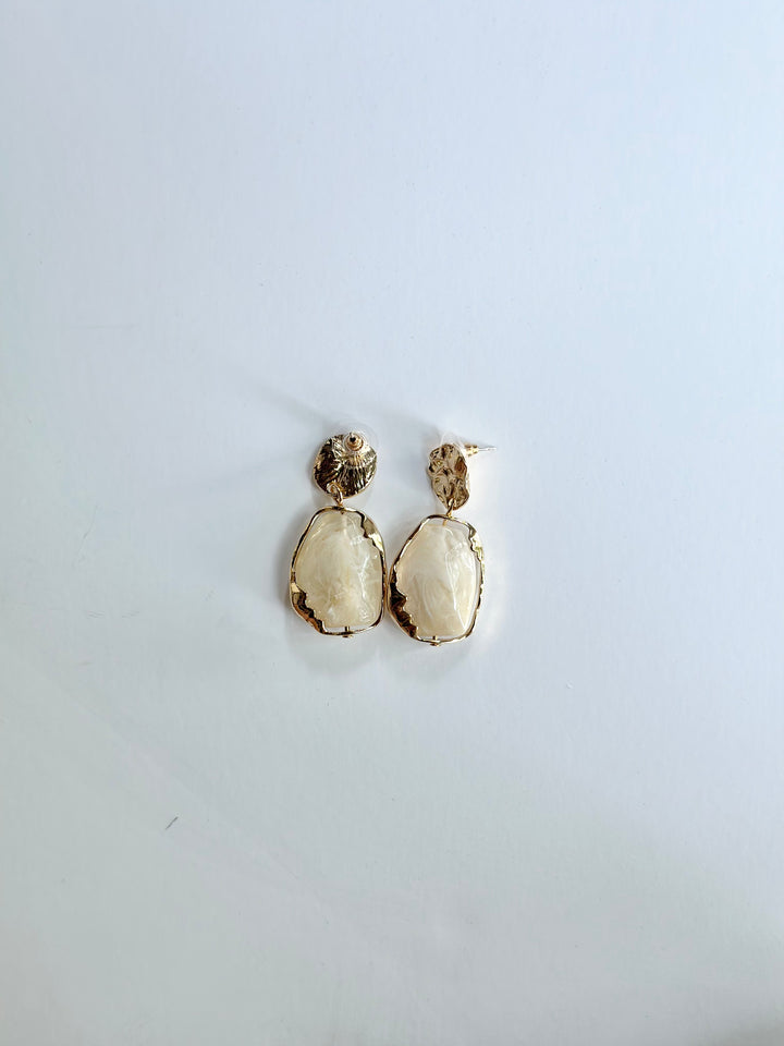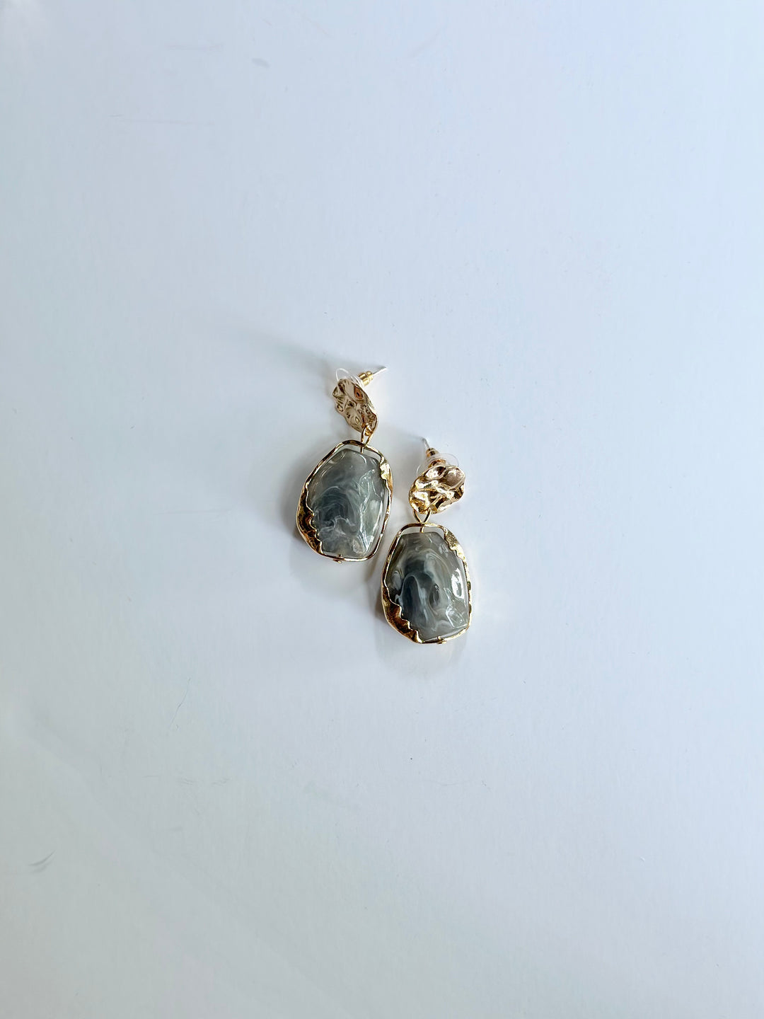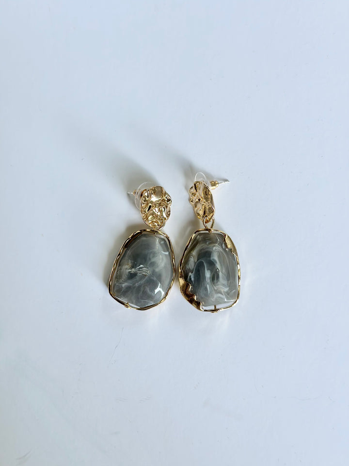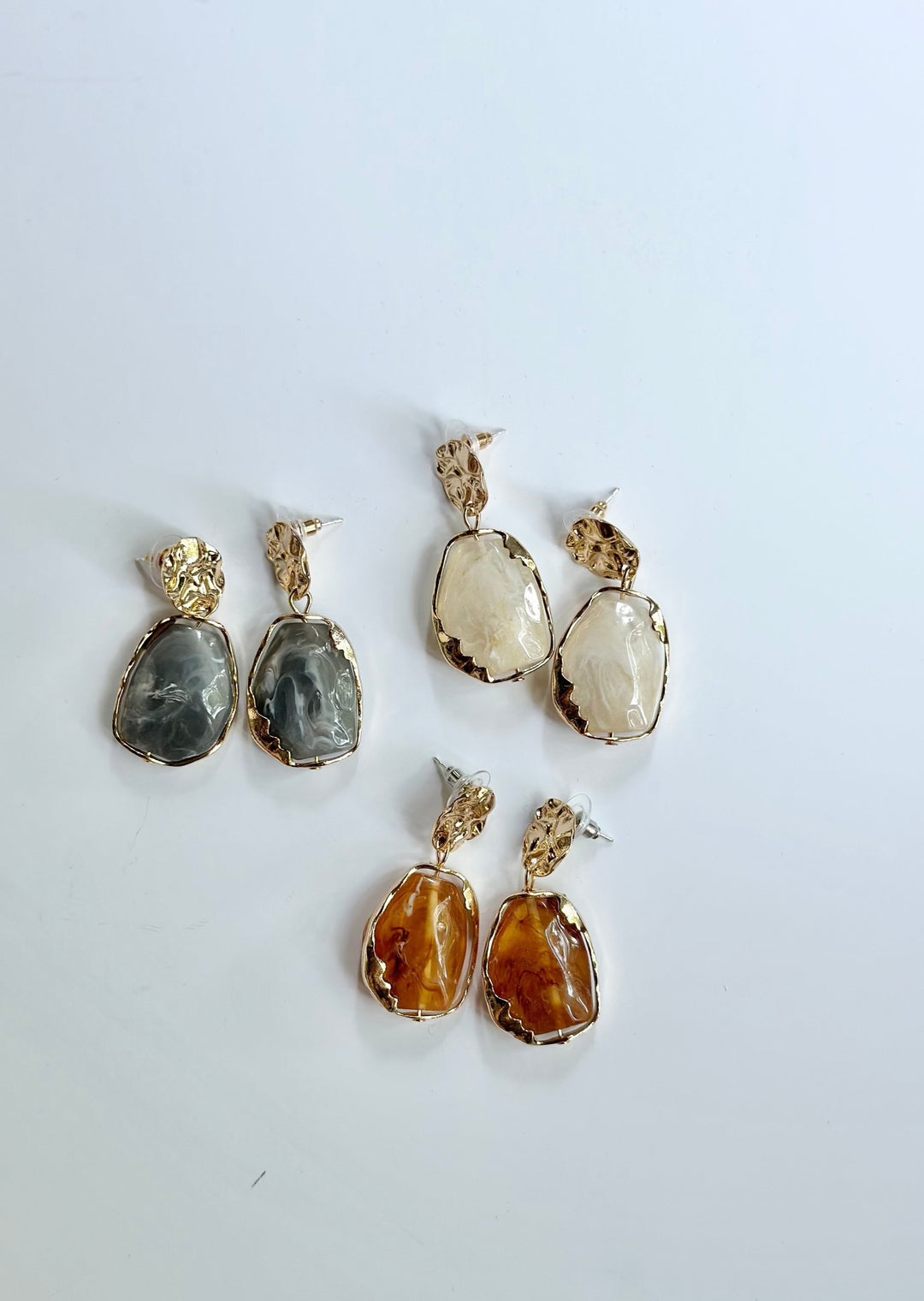 Resin drop earrings come in three colors: crimson, white, and gray.
